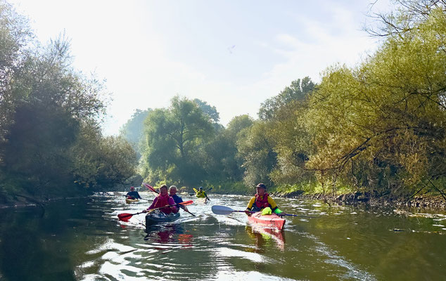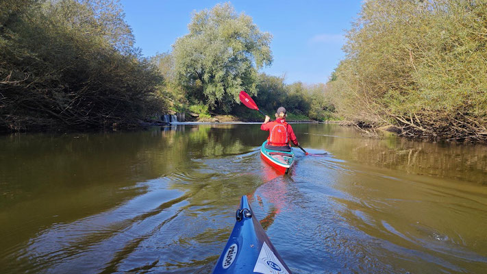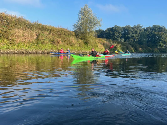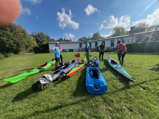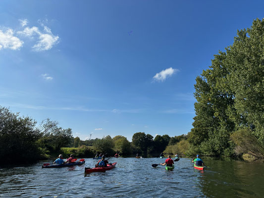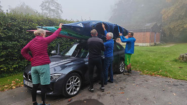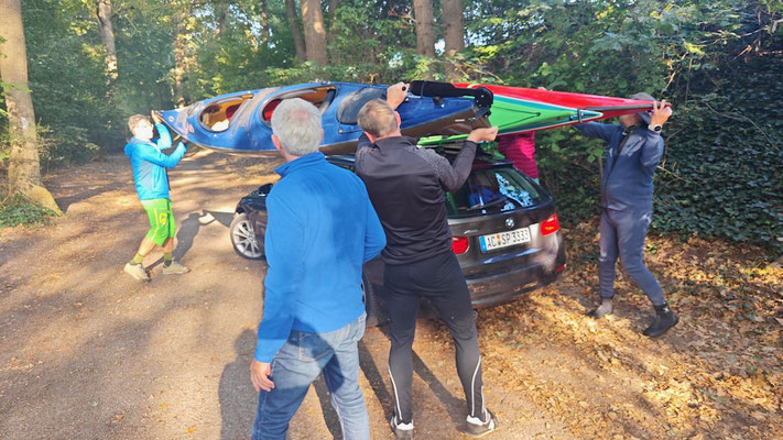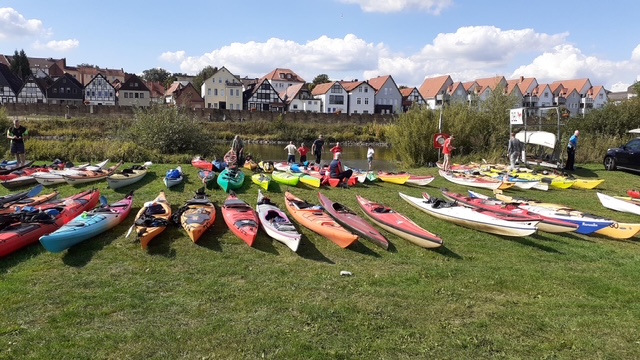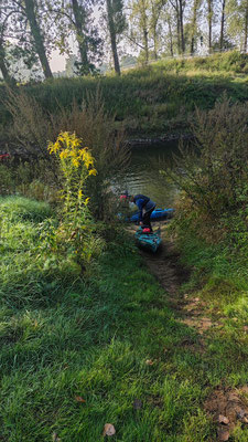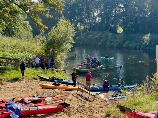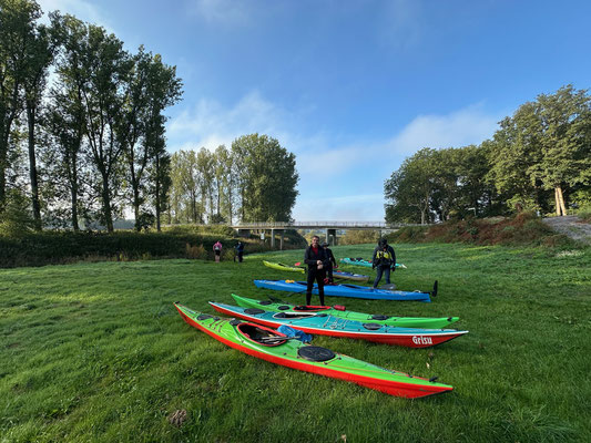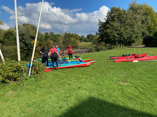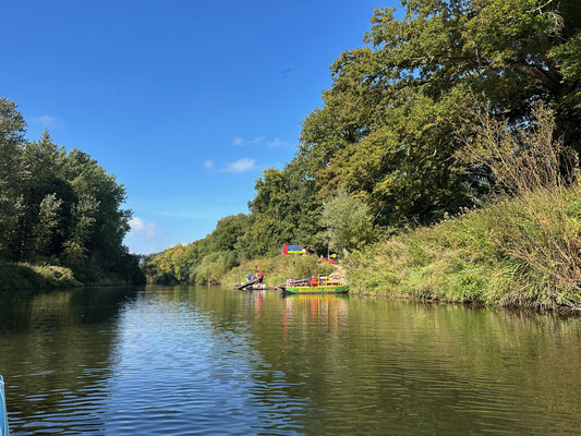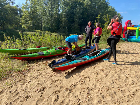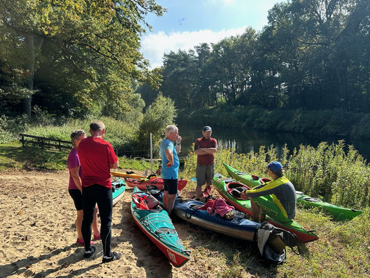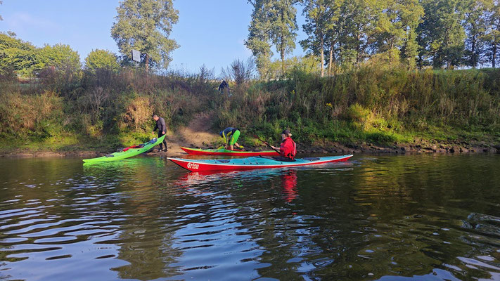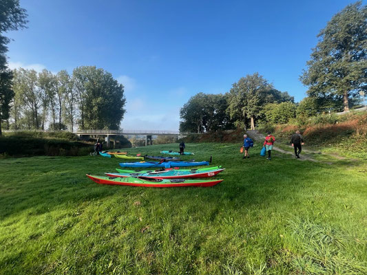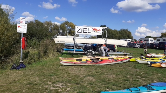 Einsatzstelle in Saerbeck, Pause an der Bockholter Emsfähre, sehr witzig, da dort ein Herbstfest stattfand, und Endstation am Kanu Club Rheine.
